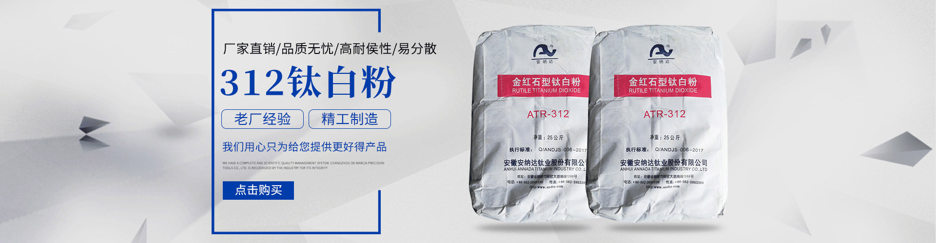 常州安鈦化工有限公司經(jīng)銷批發(fā)的鈦白粉、沉淀硫酸鋇、立德粉、滑石粉、高嶺土、炭黑、云母粉、彩色顏料、氫氧化鈣、硅微粉、氧化鐵紅、氧化鐵黑、金紅石型鈦白粉、銳鈦型鈦白粉、進(jìn)口鈦白粉暢銷消費(fèi)者市場,在消費(fèi)者當(dāng)中享有較高的地位,公司與多家零售商和代理商建立了長期穩(wěn)定的合作關(guān)系。常州安鈦化工有限公司經(jīng)銷的鈦白粉、沉淀硫酸鋇、立德粉、滑石粉、高嶺土、炭黑、云母粉、彩色顏料、氫氧化鈣、硅微粉、氧化鐵紅、氧化鐵黑、金紅石型鈦白粉、銳鈦型鈦白粉、進(jìn)口鈦白粉品種齊全、價(jià)格合理。常州安鈦化工有限公司實(shí)力雄厚,重信用、守合同、保證產(chǎn)品質(zhì)量,以多品種經(jīng)營特色和薄利多銷的原則,贏得了廣大客戶的信任。